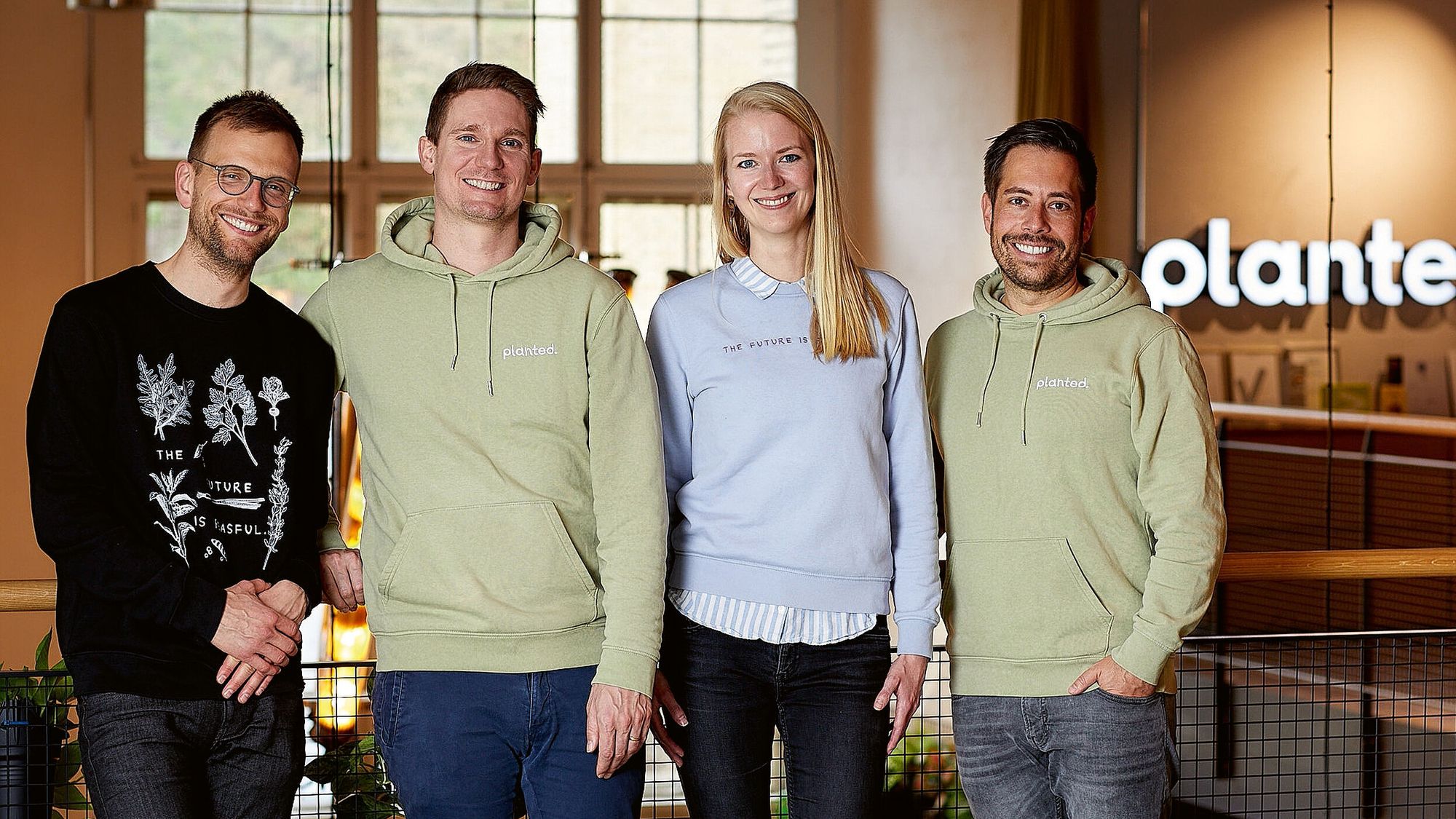 Planted Food’s founding team: Lukas Böni, Christoph Jenny, Judith Wemmer, and Pascal Bieri (from left to right).